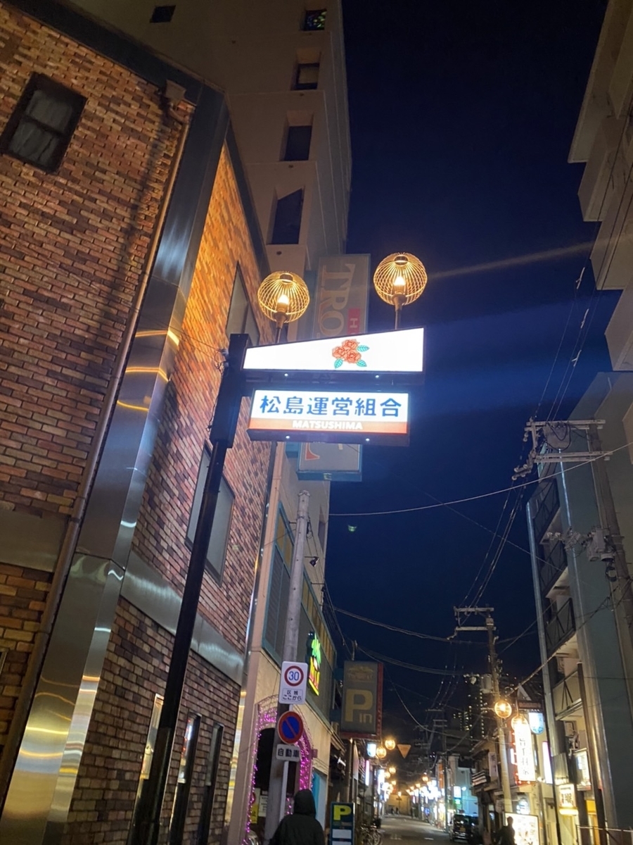 という事で松島新地に移動しようと思ったがなんとカバンを入れたコインロッカーの場所を忘れ30分ほど動物園前駅内を歩き回る始末。バカすぎる…。そんなこんなで動物園前駅から九条駅まで電車で移動しもう時間は8時過ぎ、駅から5分くらい歩くとすぐ着きました。